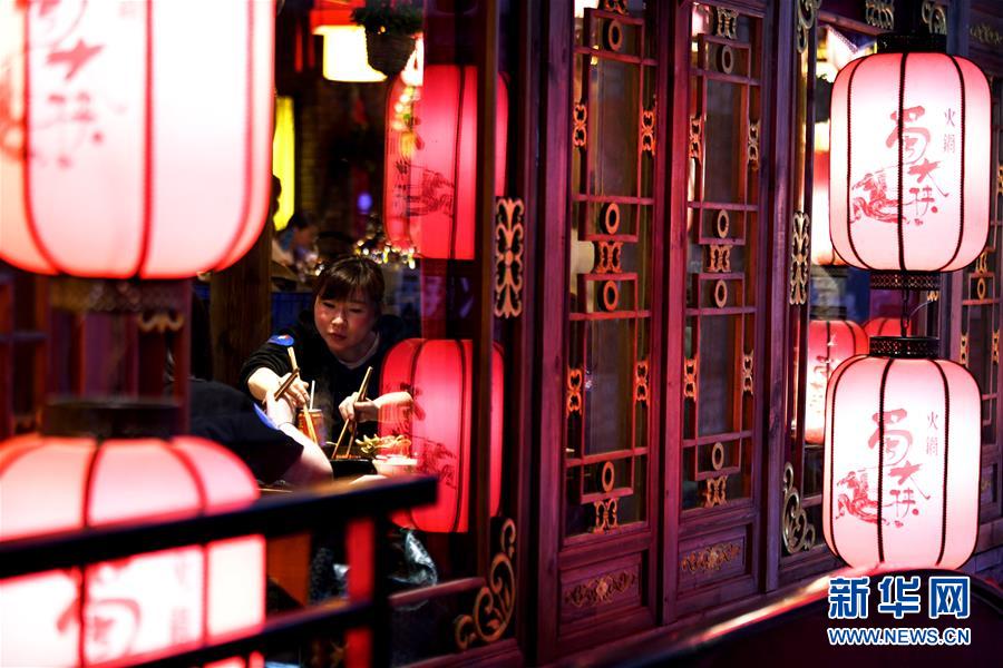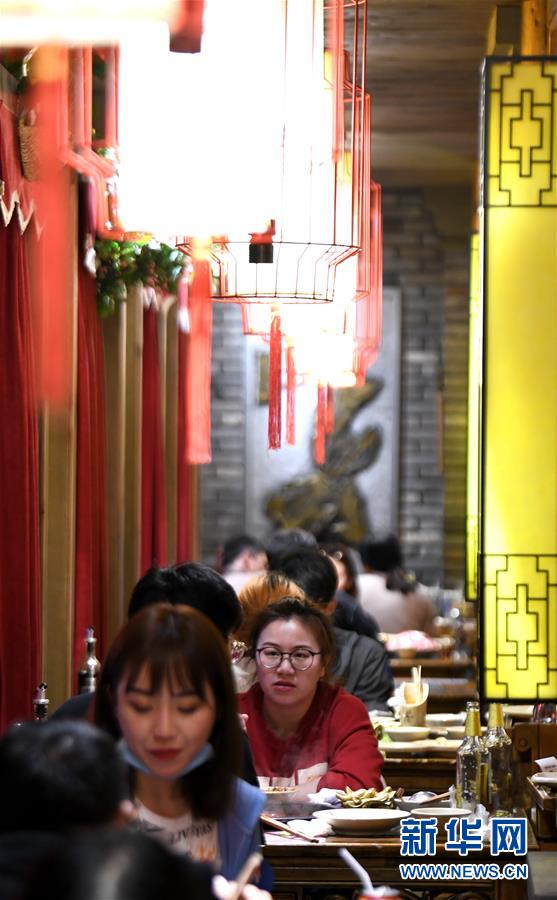 3月21日,在四川省成都市錦江區(qū)商業(yè)場(chǎng)街的一家火鍋店內(nèi),顧客在就餐。近日,在做好新冠肺炎疫情防控措施的基礎(chǔ)上,四川省成都市的火鍋店逐漸恢復(fù)營業(yè)。新華社記者王曦?cái)z