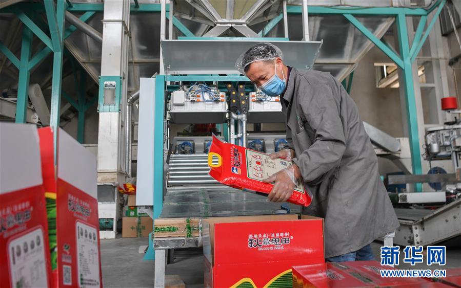 湖北當陽市壩陵辦事處群華村村民宋發(fā)林(右)和妻子在農產品合作社包裝產品,準備通過電商外銷(3月21日攝)。近日,湖北當陽市農業(yè)生產和農產品加工加速恢復。截至3月19日,當陽市86家規(guī)上農產品加工企業(yè)復工復產率為84.9%,51家農業(yè)產業(yè)化重點龍頭企業(yè)有48家復工復產,占比達94.1%。新華社記者程敏攝