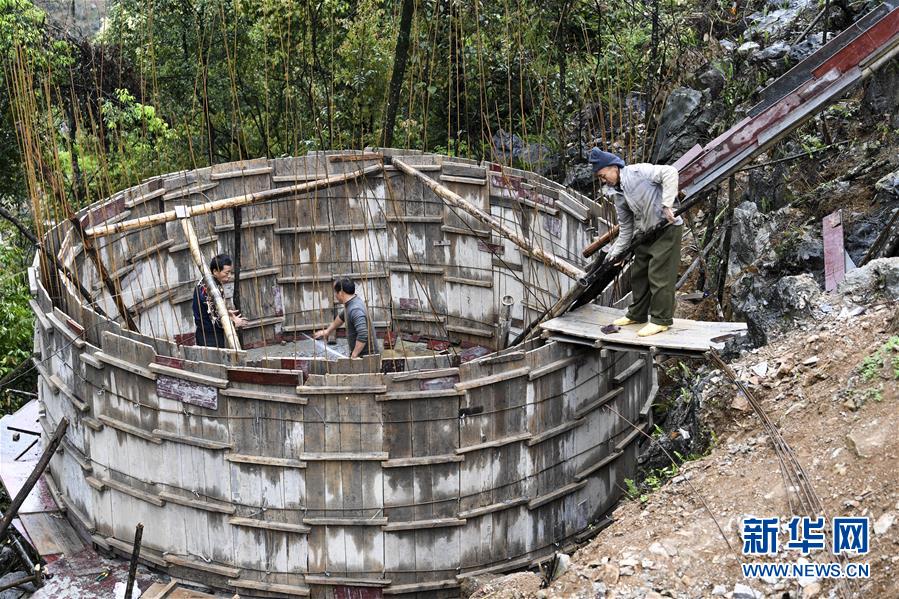 廣西都安瑤族自治縣隆福鄉(xiāng)的村民在修建家庭水柜(3月17日攝)。廣西有近一半貧困人口生活在石漠化地區(qū),涉及數(shù)十個(gè)縣區(qū)。這里也是廣西飲水保障程度最低的地區(qū),解決貧困人口飲水問題是廣西脫貧攻堅(jiān)戰(zhàn)“硬仗中的硬仗”?!笆濉币詠恚瑥V西加快實(shí)施農(nóng)村飲水安全鞏固提升工程。因地制宜,采取新建、擴(kuò)建及管網(wǎng)延伸等多種措施,補(bǔ)齊貧困地區(qū)水利薄弱短板,進(jìn)一步提升石漠化地區(qū)群眾飲水安全保障水平,助推脫貧攻堅(jiān)。新華社記者曹祎銘攝