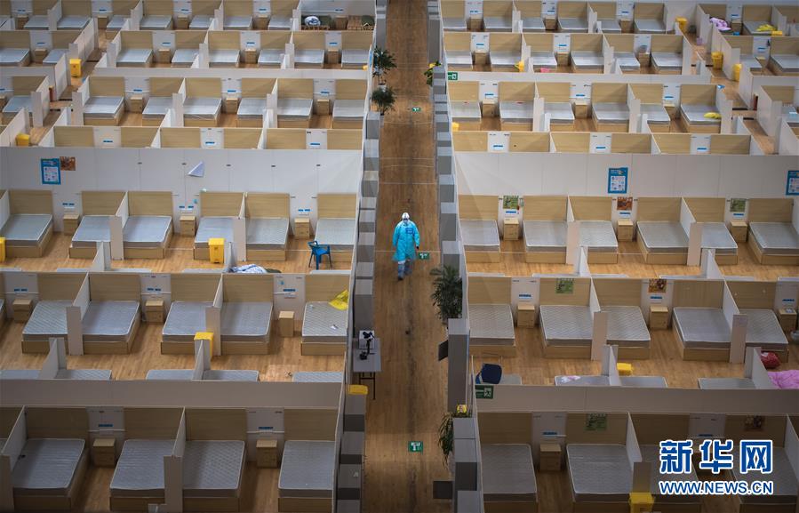3月8日,武漢體育中心方艙醫(yī)院送走最后一批痊愈患者,正式休艙。這是工作人員在艙內(nèi)進(jìn)行清理作業(yè)。新華社記者肖藝九攝