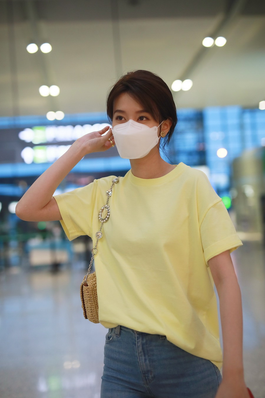一秒入夏?喬欣私服穿搭堪稱“少女模板“ 黃色短T簡約清新顯元?dú)饣盍?/h1>