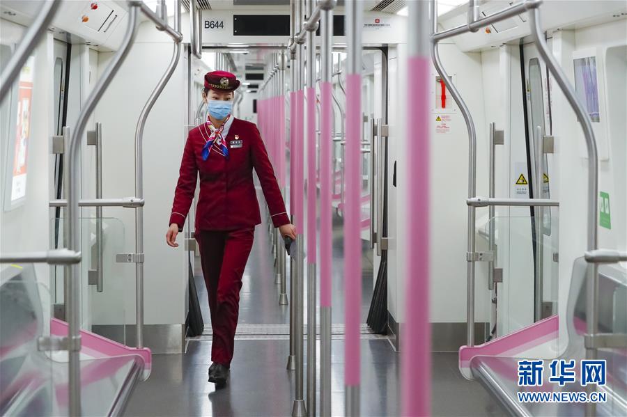 3月28日,武漢地鐵運(yùn)營有限公司司機(jī)吳亞在常青車輛段巡視車輛內(nèi)部情況。新華社記者沈伯韓攝