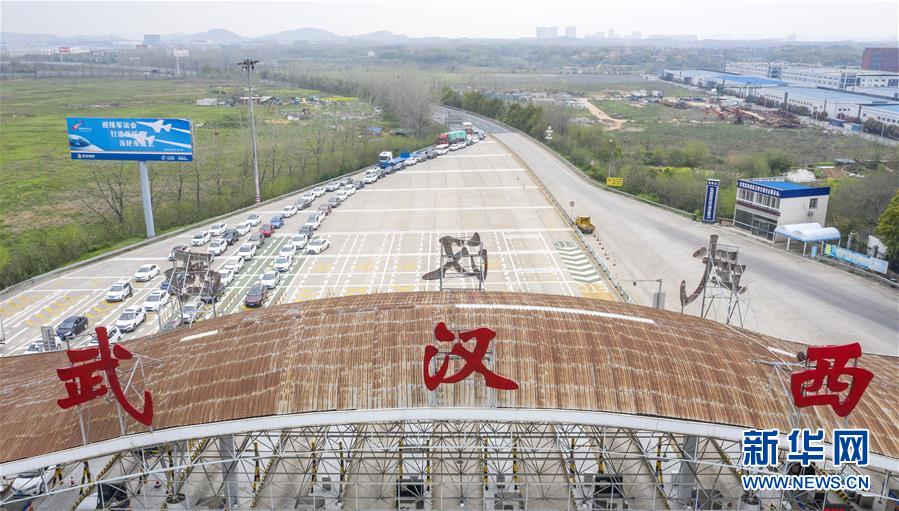 3月24日,在武漢西高速收費(fèi)站交通卡點(diǎn),返漢車輛排隊(duì)等候入城(無(wú)人機(jī)照片)。當(dāng)日,湖北省新冠肺炎疫情防控指揮部發(fā)布通告說(shuō),湖北省除武漢市以外地區(qū),將于3月25日起解除離鄂通道管控,武漢市將于4月8日起解除離漢離鄂通道管控措施。隨著近日武漢部分企業(yè)逐漸復(fù)產(chǎn)復(fù)工,進(jìn)入武漢的返城務(wù)工人員陸續(xù)增多,車輛在武漢西高速收費(fèi)站交通卡點(diǎn)有序排隊(duì)返回武漢。工作人員對(duì)返城人員檢查體溫,并核查證明健康的“綠碼”和身份證后放行。新華社記者才揚(yáng)攝