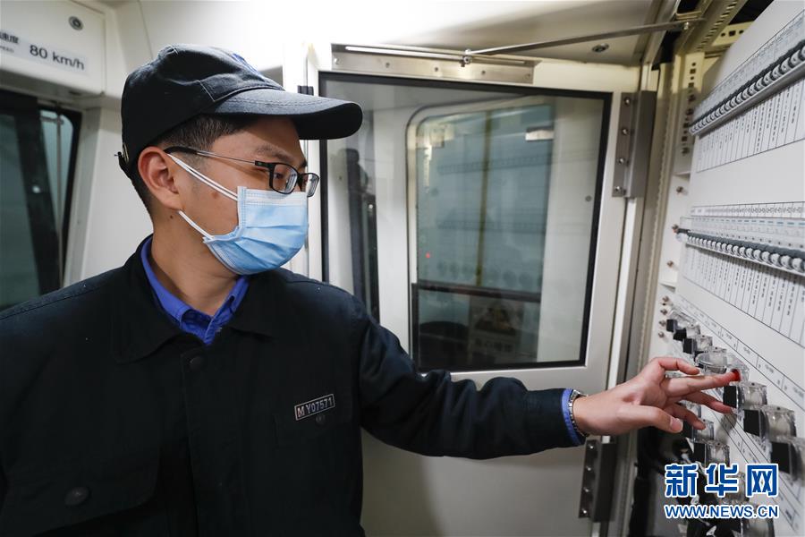 3月23日,武漢地鐵運(yùn)營(yíng)有限公司車輛二部檢修一車間檢修員萬(wàn)交林在地鐵列車上緩解所有制動(dòng),并檢查車輛制動(dòng)相關(guān)功能。新華社記者沈伯韓攝