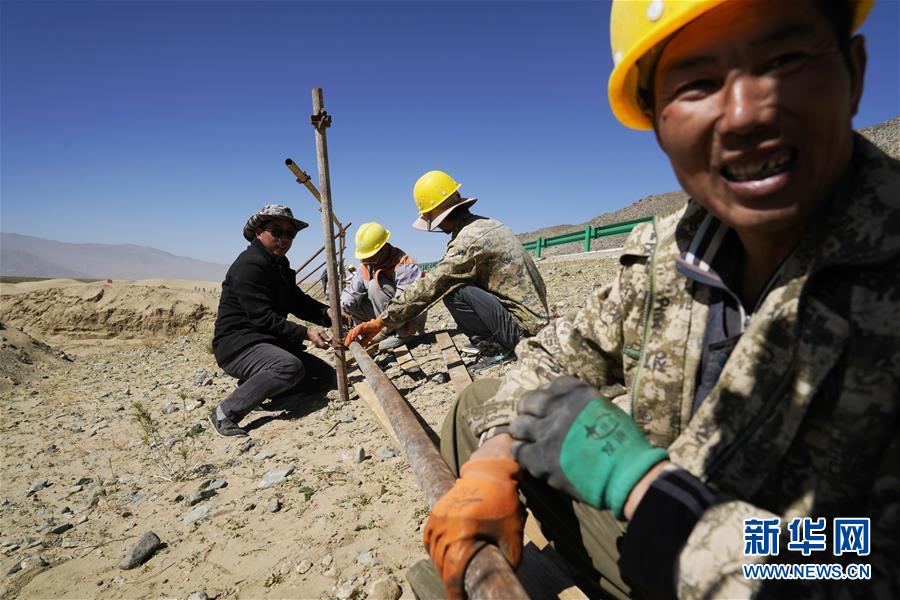 10月17日,工作人員在扎囊國家沙漠公園施工。新華社記者普布扎西攝