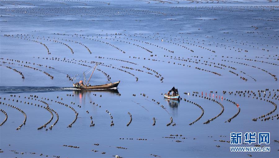 漁民在海洋牧場上工作(7月8日攝)。新華社記者姚劍鋒攝