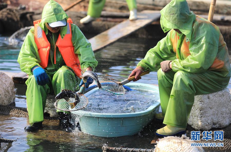 漁民在海洋牧場上分揀捕獲的海魚(7月8日攝)。新華社記者姚劍鋒攝