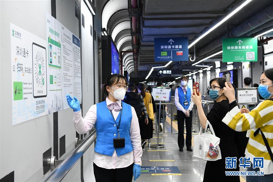 3月18日晚高峰時段,在深圳地鐵車公廟站,乘客掃描二維碼進(jìn)行實名登記。新華社記者梁旭攝