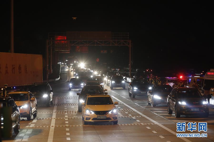 4月8日凌晨,車輛通過武漢西高速收費(fèi)站(無人機(jī)拍攝)。 新華社記者 沈伯韓 攝