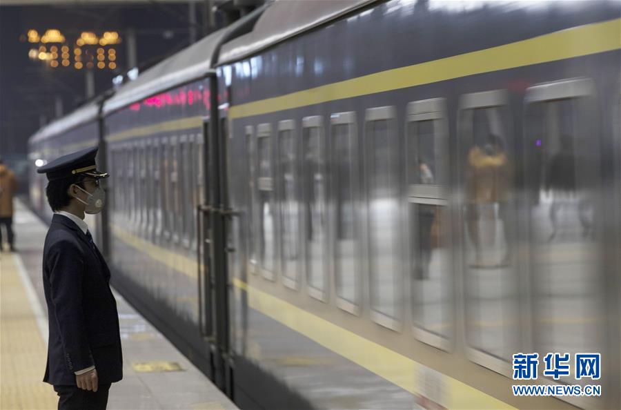 4月8日凌晨,K81次列車駛離武昌火車站。 4月8日零時(shí)起,武漢市正式解除離漢離鄂通道管控措施,有序恢復(fù)對(duì)外交通。 新華社記者 費(fèi)茂華 攝