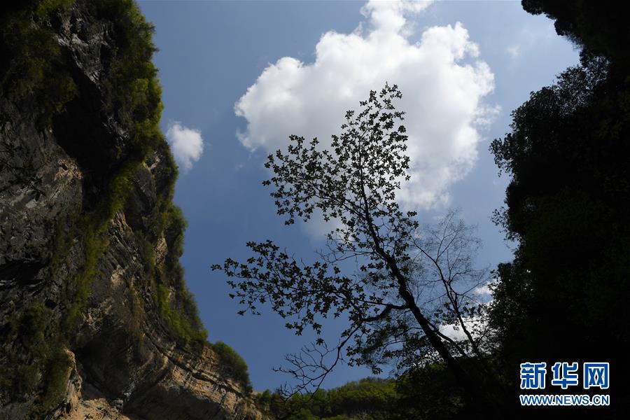 這是在地洞河天坑底部拍攝的植物。新華社張博文攝