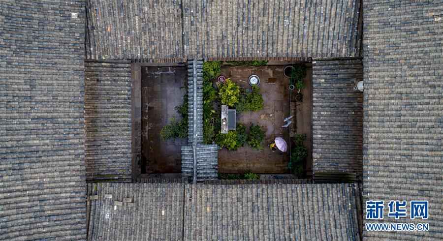 放暑假的楊蓉在石屏縣異龍鎮(zhèn)符家營村家中(8月8日無人機(jī)拍攝)。新華社記者江文耀攝