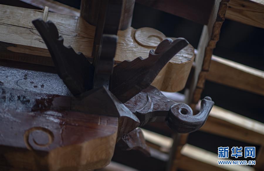 石屏縣異龍鎮(zhèn)符家營村211號民居中修繕完成的木斗拱(8月8日攝)。新華社記者江文耀攝