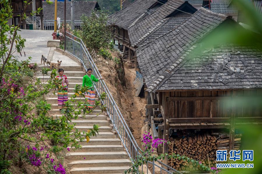 4月12日,在云南省勐海縣布朗山鄉(xiāng)曼囡村曼班三隊,娜四(左)和妹妹走在村里。新華社記者胡超攝