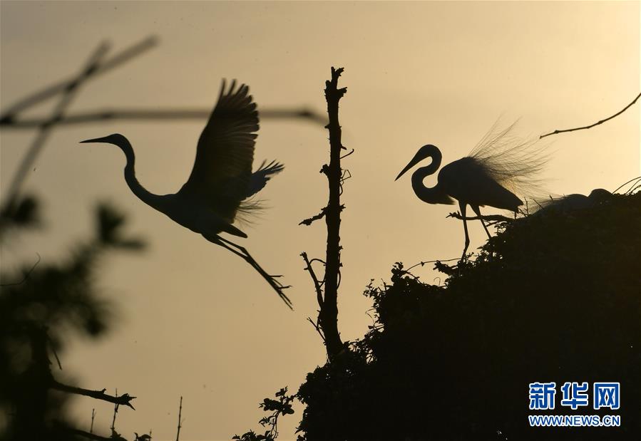 象山森林公園內(nèi)的白鷺(4月26日攝)。近日,在江西省南昌市新建區(qū)象山森林公園內(nèi),已安家筑巢的大批鷺鳥正陸續(xù)孵化后代,一派生機勃勃的景象。新華社記者彭昭之?dāng)z