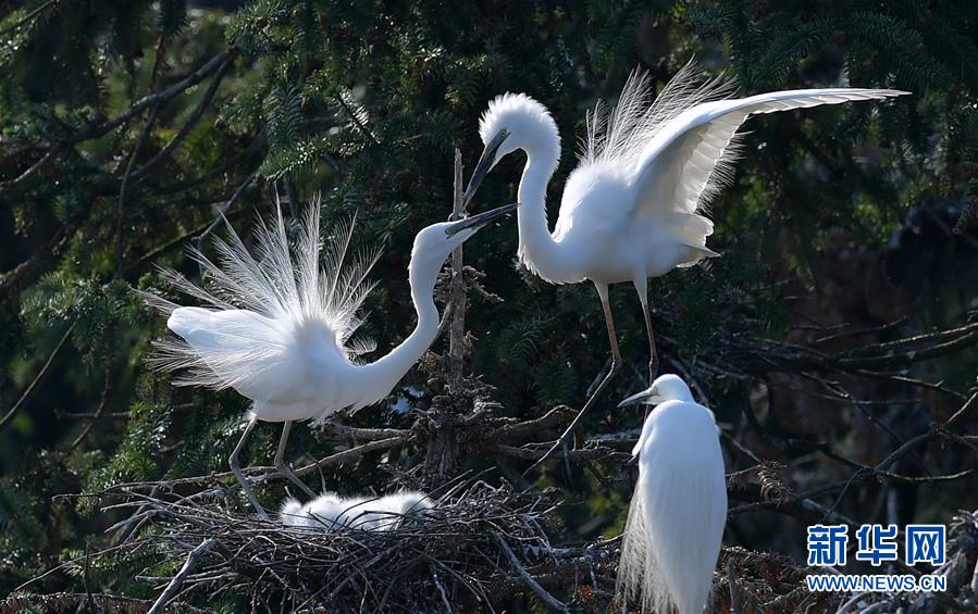 白鷺在象山森林公園嬉戲(4月26日攝)。近日,在江西省南昌市新建區(qū)象山森林公園內(nèi),已安家筑巢的大批鷺鳥正陸續(xù)孵化后代,一派生機(jī)勃勃的景象。新華社記者彭昭之?dāng)z