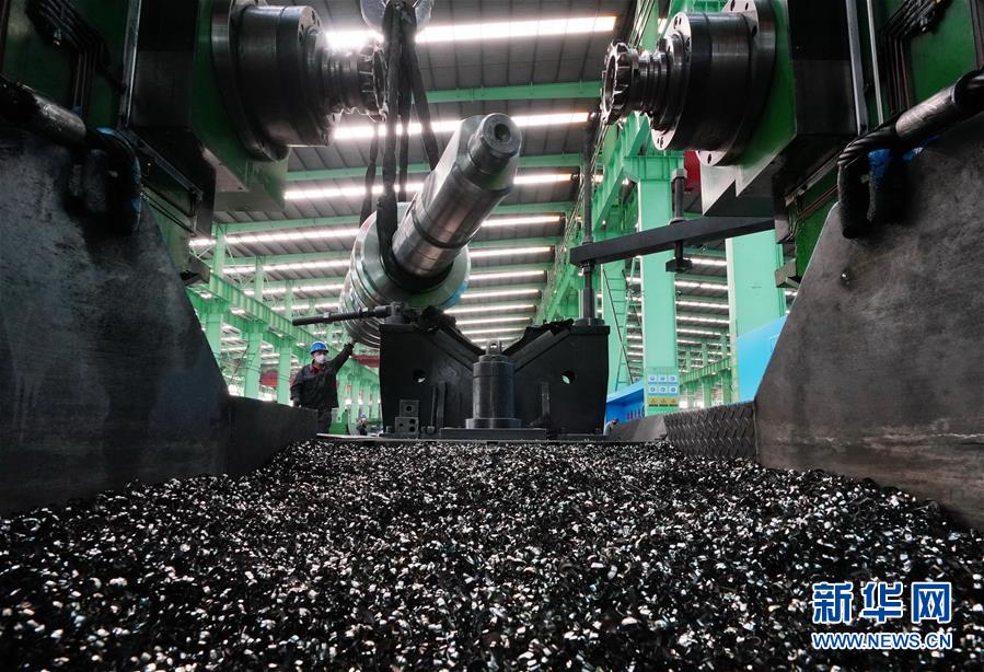4月27日,工人在唐山市豐潤(rùn)區(qū)一家軋輥生產(chǎn)企業(yè)車間工作。河北省唐山市豐潤(rùn)區(qū)裝備制造業(yè)企業(yè)全面復(fù)工復(fù)產(chǎn)以來(lái),各企業(yè)在做好疫情防控的同時(shí),開足馬力加緊生產(chǎn),趕制訂單滿足需求,助推經(jīng)濟(jì)發(fā)展。新華社記者楊世堯攝