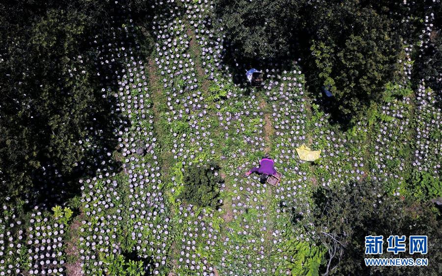 村民在劍河縣岑松鎮(zhèn)巫亮村林下仿野生食用菌基地采摘木耳(4月27日攝,無人機(jī)照片)。近年來,貴州省黔東南苗族侗族自治州劍河縣充分利用林下土地培育木耳,既不耽誤林木生長,又發(fā)展了食用菌產(chǎn)業(yè)。目前,該縣采取“龍頭企業(yè)+合作社+貧困戶”的合作模式,大力推廣林下木耳種植,帶動(dòng)農(nóng)民增收。新華社記者楊文斌攝