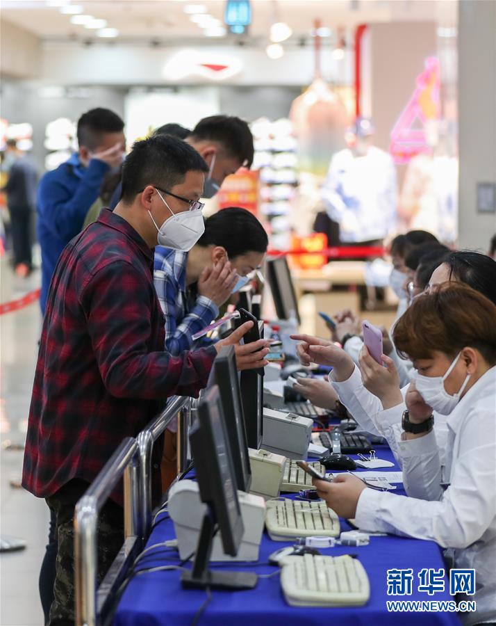 5月5日,消費者在上海一家商場的消費券服務(wù)臺前排隊辦理業(yè)務(wù)。5月4日晚,上海首次啟動大規(guī)模商業(yè)促銷活動“五五購物節(jié)”,多家在線新經(jīng)濟(jì)企業(yè)參與,通過線上流量優(yōu)勢反哺線下賣場,實現(xiàn)電商與實體零售融合互動,激活消費潛力、驅(qū)動消費復(fù)蘇。據(jù)“上海發(fā)布”的消息,截至5日14時12分,“五五購物節(jié)”上海地區(qū)消費支付總額已超100億元。新華社記者丁汀攝