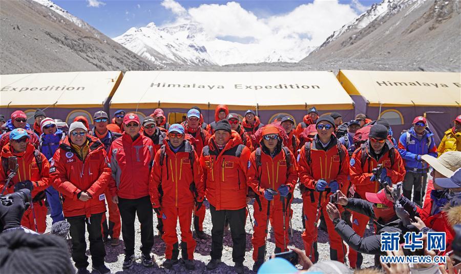 5月6日,登山隊員們在珠峰大本營舉行出發(fā)儀式。