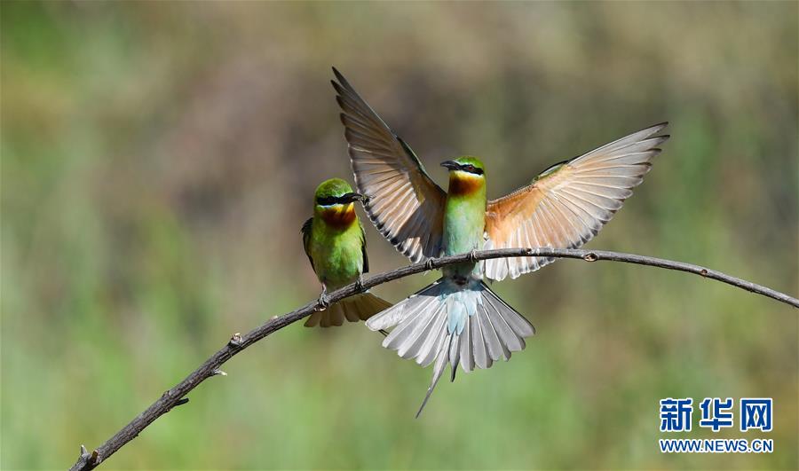 近日,百余只栗喉蜂虎和少量藍(lán)喉蜂虎來到海南省??谑形骱0抖鄠€(gè)地點(diǎn)棲息繁衍,為椰城增添一抹亮色。據(jù)了解,蜂虎每年春夏都會回到固定地點(diǎn)繁殖,由于習(xí)性特殊,蜂虎需要在新形成的沙質(zhì)土坡上做窩。為此,??谑邢嚓P(guān)部門每年在蜂虎到來之前,會在蜂虎棲息地整坡清樹,為蜂虎營造良好的棲息環(huán)境。
