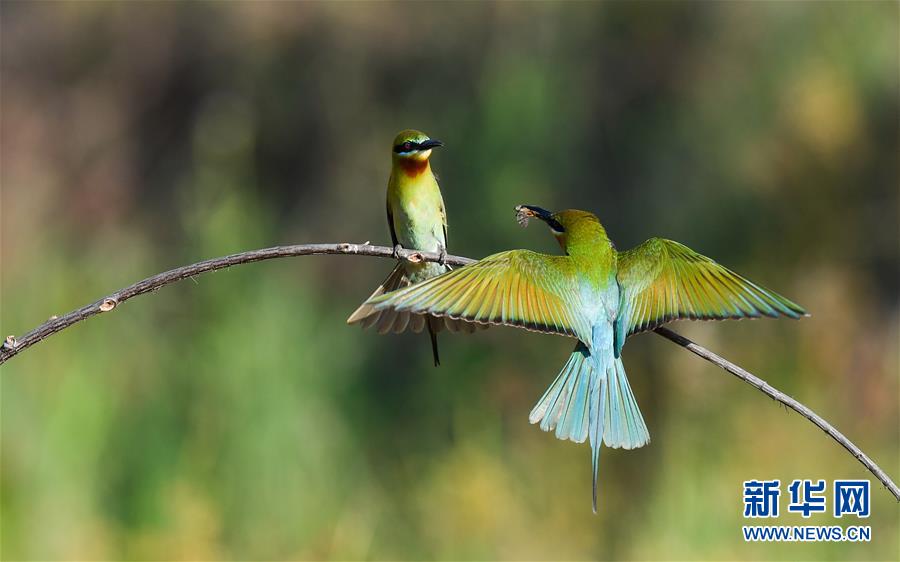 在??谖逶春酉掠畏浠⒈Wo(hù)小區(qū),栗喉蜂虎在覓食(5月7日攝)。新華社記者楊冠宇攝