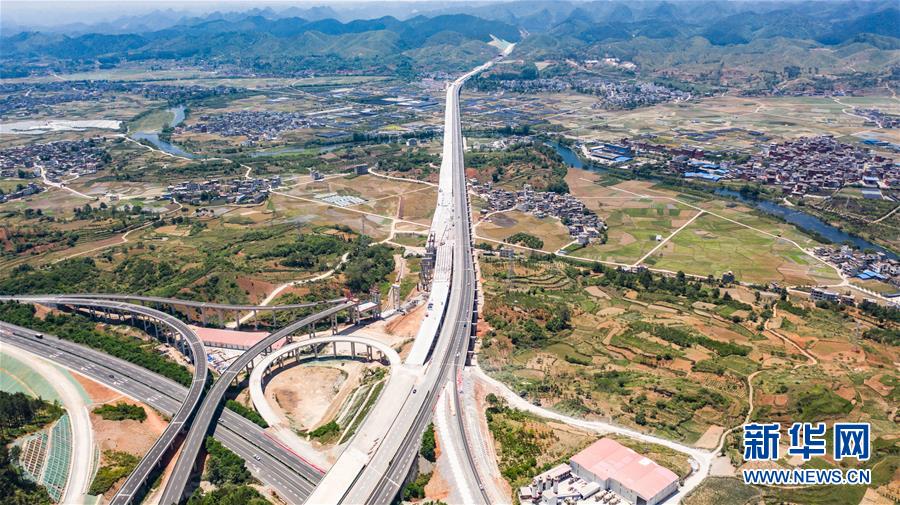都安高速改擴(kuò)建路段的惠水特大橋與惠水樞紐(無(wú)人機(jī)照片,5月9日攝)。