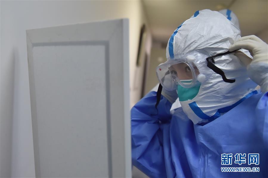 5月11日,在北京地壇醫(yī)院感染二科病房外,護(hù)士劉印懷穿戴防護(hù)設(shè)備準(zhǔn)備進(jìn)入病房。北京地壇醫(yī)院是北京市收治新冠肺炎患者的定點(diǎn)醫(yī)院之一,醫(yī)院的醫(yī)護(hù)人員一直奮戰(zhàn)在抗擊疫情的一線。在國(guó)際護(hù)士節(jié)前夕,記者前往北京地壇醫(yī)院,記錄下抗疫一線護(hù)士的日常工作狀態(tài)。新華社記者彭子洋攝