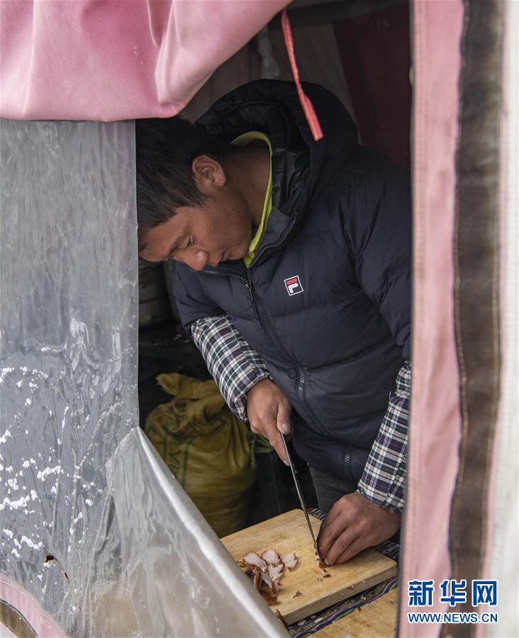 在海拔6500米的珠峰前進營地,一名高山廚師在準備菜品(5月10日攝)。新華社記者孫非攝