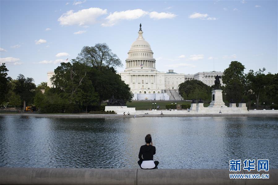 5月13日,一名女子美國華盛頓國會大廈附近休息。新華社記者劉杰攝