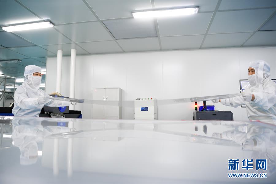 在位于宿遷激光產(chǎn)業(yè)園的江蘇華科創(chuàng)智技術(shù)有限公司,工人在觸摸屏生產(chǎn)車間作業(yè)(5月13日攝)。江蘇省宿遷市2016年初啟動建設(shè)宿遷激光產(chǎn)業(yè)園,目前,園區(qū)共有激光及相關(guān)配套企業(yè)50余家,涉及激光切割、激光打標、激光醫(yī)療等。當?shù)夭粩嗤晟茍@區(qū)配套設(shè)施,推動激光產(chǎn)業(yè)集聚,打造激光研發(fā)、裝備制造和加工應用的完整產(chǎn)業(yè)鏈。新華社記者李博攝