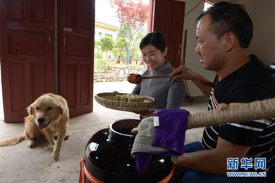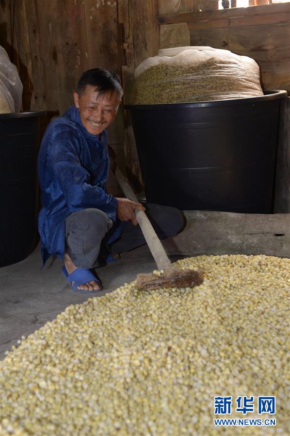 5月14日,在貴州省畢節(jié)市百里杜鵑管理區(qū)黃泥鄉(xiāng)龍?zhí)链逡患揖谱鞣?,村民?duì)玉米進(jìn)行發(fā)酵。貴州省畢節(jié)市百里杜鵑管理區(qū)黃泥鄉(xiāng)龍?zhí)链宓凝執(zhí)凉啪?,因?dú)特的古法釀酒技術(shù),口感獨(dú)特而遠(yuǎn)近聞名。全村有釀酒戶142戶,年產(chǎn)量達(dá)45萬(wàn)多公斤,龍?zhí)凉啪七h(yuǎn)銷重慶、廣東、浙江等地,龍?zhí)凉啪埔殉蔀辇執(zhí)寥嗽鍪盏闹匾獊?lái)源。新華社記者楊楹攝