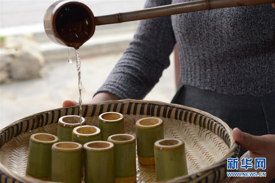 5月14日,在貴州省畢節(jié)市百里杜鵑管理區(qū)黃泥鄉(xiāng)龍?zhí)链逡患揖谱鞣?,村民在品嘗剛出的蒸餾酒。貴州省畢節(jié)市百里杜鵑管理區(qū)黃泥鄉(xiāng)龍?zhí)链宓凝執(zhí)凉啪?,因?dú)特的古法釀酒技術(shù),口感獨(dú)特而遠(yuǎn)近聞名。全村有釀酒戶142戶,年產(chǎn)量達(dá)45萬(wàn)多公斤,龍?zhí)凉啪七h(yuǎn)銷重慶、廣東、浙江等地,龍?zhí)凉啪埔殉蔀辇執(zhí)寥嗽鍪盏闹匾獊?lái)源。新華社記者楊楹攝