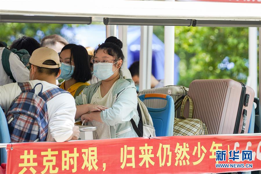 5月15日,在西南大學(xué)的返校學(xué)生報(bào)到點(diǎn),學(xué)生在校內(nèi)轉(zhuǎn)運(yùn)車上準(zhǔn)備前往宿舍。當(dāng)日,重慶西南大學(xué)迎來疫情以來首批返校大學(xué)生。據(jù)介紹,按照疫情防控的需要,重慶市高校2020年春季學(xué)期從5月11日起按照“一校一策”原則,實(shí)行錯(cuò)峰錯(cuò)時(shí)分批次有序開學(xué)復(fù)課。新華社記者劉潺攝