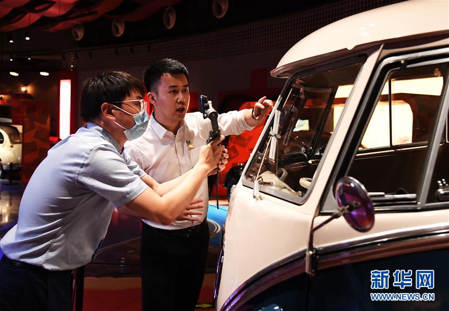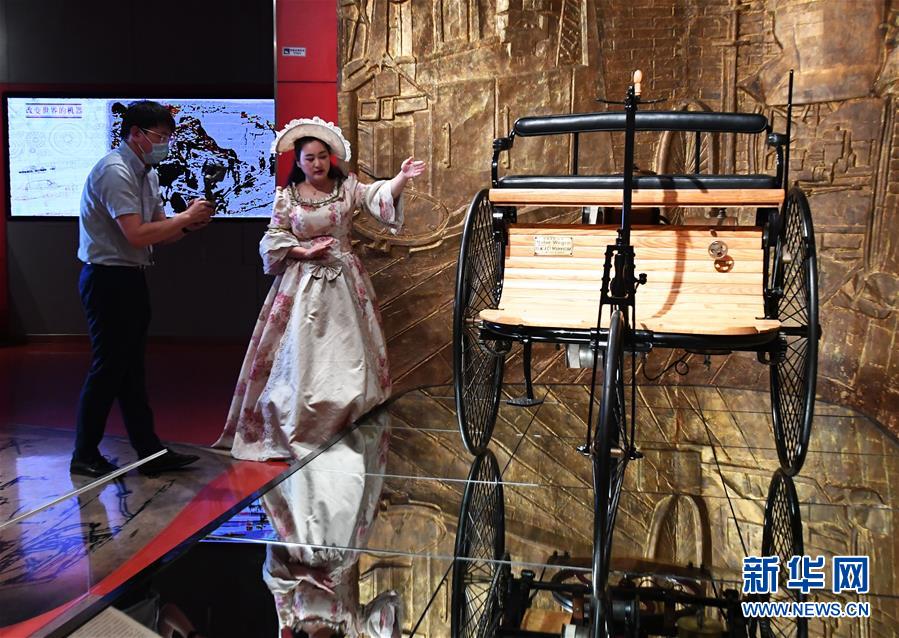 5月18日,在北京汽車博物館,工作人員(左)用講故事的方式通過(guò)網(wǎng)絡(luò)直播平臺(tái)介紹展品。當(dāng)日是國(guó)際博物館日,北京汽車博物館舉辦“帶你穿梭汽車時(shí)光”網(wǎng)絡(luò)直播活動(dòng),通過(guò)網(wǎng)絡(luò)直播平臺(tái)對(duì)博物館中的藏品車進(jìn)行展示和講解,讓網(wǎng)友足不出戶“云”游北京汽車博物館,了解汽車百年發(fā)展史,感受汽車文化魅力。新華社記者任超攝