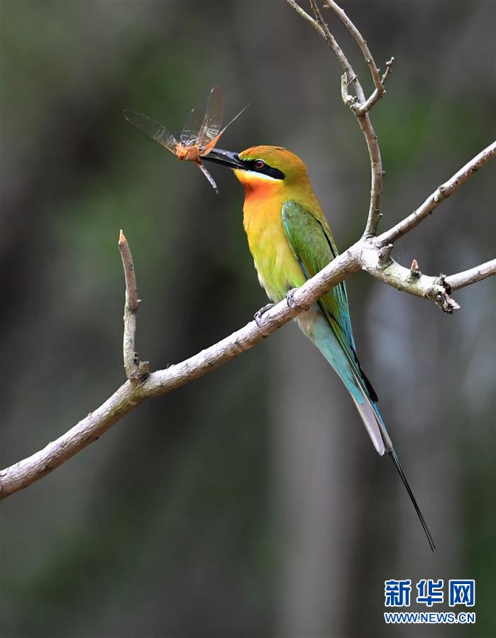 5月19日,在廈門(mén)五緣灣栗喉蜂虎自然保護(hù)區(qū),栗喉蜂虎捕到一只昆蟲(chóng)。近日,大批栗喉蜂虎來(lái)到廈門(mén)五緣灣栗喉蜂虎自然保護(hù)區(qū)棲息、繁殖。新華社記者魏培全攝