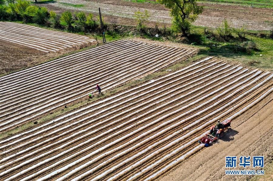 宋家溝村村民在種谷子(5月19日攝,無人機(jī)照片)。新華社記者曹陽攝