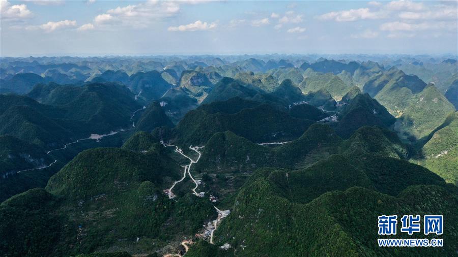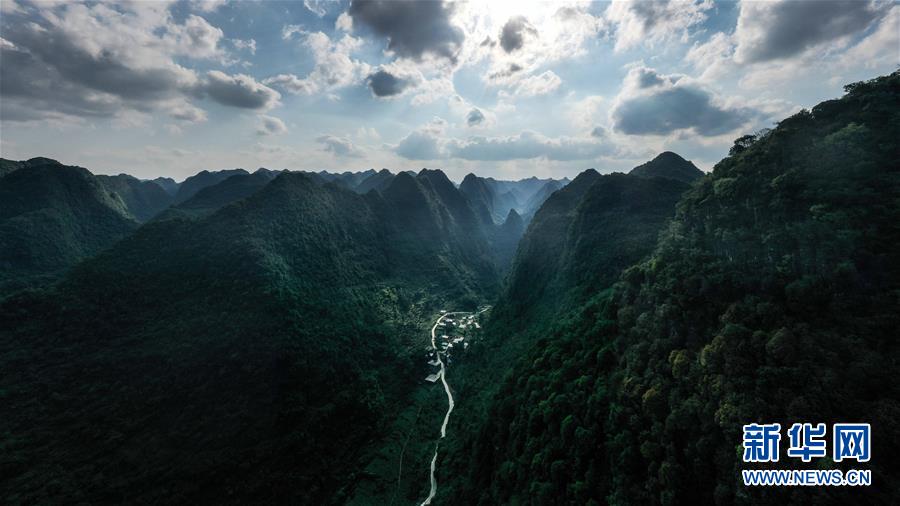 這是去年底通車的大化瑤族自治縣七百弄鄉(xiāng)江棟村那徐屯至弄獎(jiǎng)屯公路(5月14日攝,無人機(jī)照片)。新華社記者曹祎銘攝