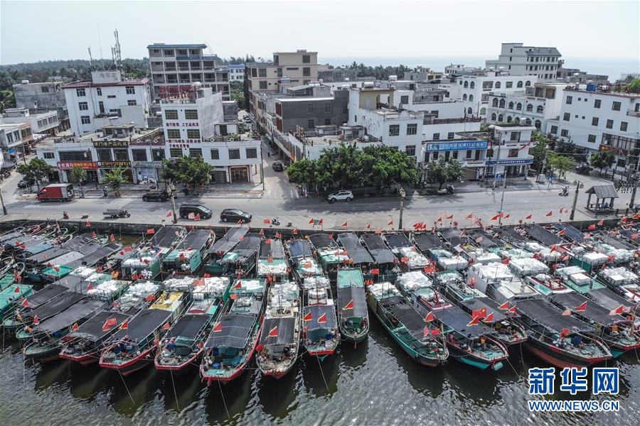 這是5月21日拍攝的停靠在海南瓊海市潭門鎮(zhèn)的漁船(無(wú)人機(jī)照片)。5月1日12時(shí)起,我國(guó)渤海、黃海、東海和北緯12度以北的南海海域進(jìn)入海洋伏季休漁期。海南瓊海市潭門鎮(zhèn)的漁民利用休漁時(shí)間對(duì)船體、機(jī)械設(shè)備、網(wǎng)具等進(jìn)行維修、保養(yǎng),保證休漁結(jié)束后以最好狀態(tài)出海捕撈。新華社記者張麗蕓攝