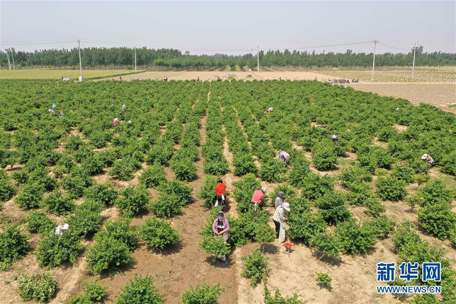 5月21日,河北省清河縣農(nóng)墾金銀花種植專業(yè)合作社社員在采收金銀花(無人機(jī)照片)。2017年以來,河北省清河縣在推進(jìn)農(nóng)業(yè)產(chǎn)業(yè)結(jié)構(gòu)調(diào)整過程中,結(jié)合市場(chǎng)需求,立足當(dāng)?shù)赝寥?、氣候特點(diǎn),依托公司“訂單”引導(dǎo)農(nóng)民發(fā)展金銀花種植。目前,清河縣金銀花種植面積近2000畝,帶動(dòng)40多個(gè)村莊的2000余名農(nóng)民人均增收千元以上。新華社記者牟宇攝