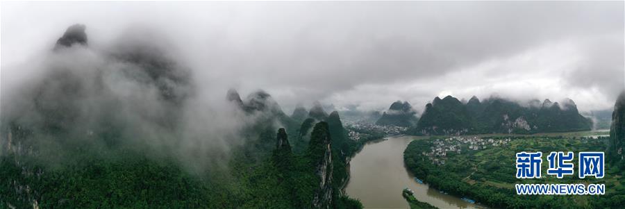 這是在廣西桂林市陽朔縣興坪鎮(zhèn)拍攝的山水風(fēng)光(5月21日攝,無人機(jī)全景照片)?!吧n蒼森八桂,茲地在湘南。江作青羅帶,山如碧玉篸……”一千多年前,唐朝詩人韓愈寫盡桂林山水之美。初夏時節(jié),在廣西桂林市陽朔縣興坪鎮(zhèn),藍(lán)天白云下,煙雨朦朧中,桂林山水盡顯秀美。新華社記者 周華 攝
