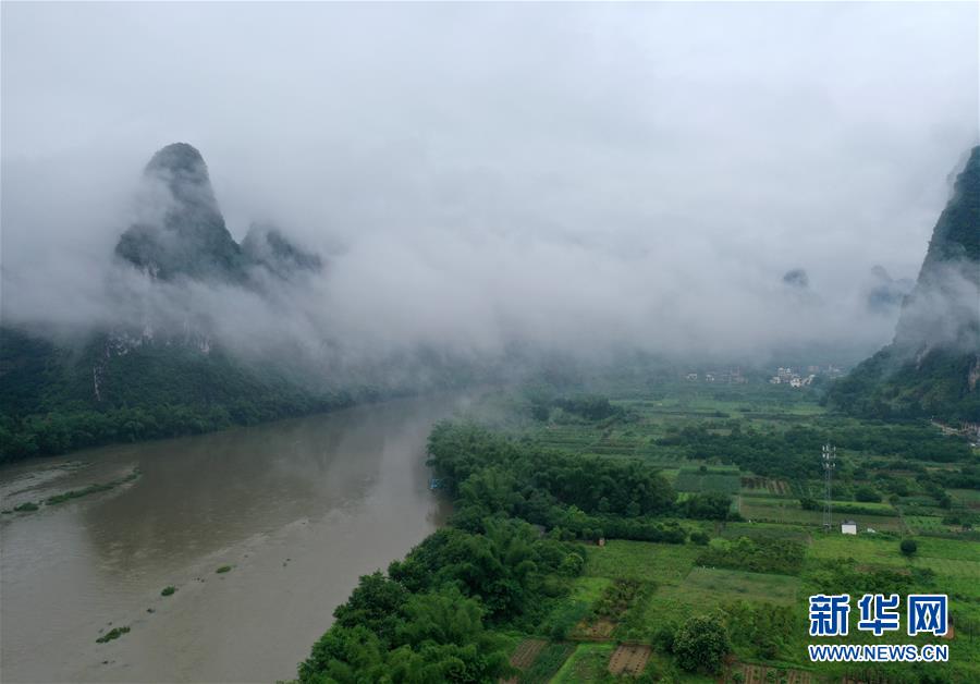 這是在廣西桂林市陽朔縣興坪鎮(zhèn)拍攝的山水風光(5月19日攝,無人機照片)?!吧n蒼森八桂,茲地在湘南。江作青羅帶,山如碧玉篸……”一千多年前,唐朝詩人韓愈寫盡桂林山水之美。初夏時節(jié),在廣西桂林市陽朔縣興坪鎮(zhèn),藍天白云下,煙雨朦朧中,桂林山水盡顯秀美。新華社記者 曹祎銘 攝