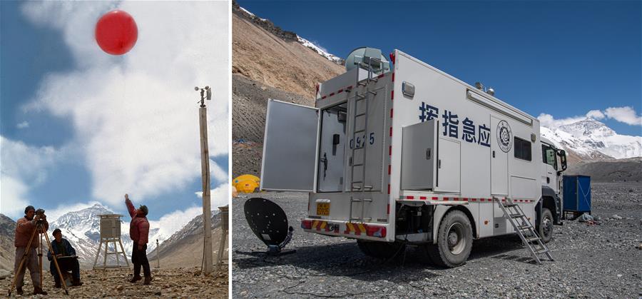 拼版照片:左圖為1975年6月9日,我國氣象工作者在珠穆朗瑪峰腳下的高山氣象站收集氣象資料。新華社記者程至善攝右圖為2020年5月25日拍攝的珠峰大本營氣象應急保障車,西藏自治區(qū)氣象局氣象專家在這里與后方氣象專家進行天氣會商。新華社記者普布扎西攝