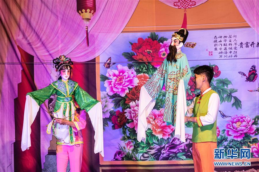 5月24日,海南臨高新風(fēng)人偶戲團在臨高縣美朗村演出。新華社記者張麗蕓攝