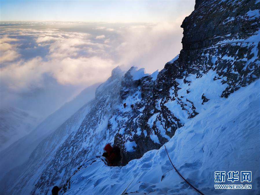 5月27日,2020珠峰高程測量登山隊(duì)正在向珠峰峰頂挺進(jìn)。當(dāng)日2時(shí)10分許,2020珠峰高程測量登山隊(duì)8名隊(duì)員陸續(xù)從海拔8300米的突擊營地出發(fā),向著世界海拔最高的珠峰峰頂挺進(jìn)。新華社特約記者扎西次仁攝