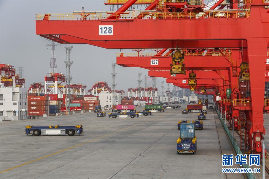 5月28日拍攝的上海洋山港四期自動化碼頭。新華社記者張玉薇攝