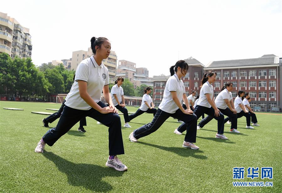 5月28日,北京市第十八中學初三年級的學生在體育課上做準備活動。北京市第十八中學共有初三年級學生340余名,學校在做好初三年級學生中考文化課備考的同時,加強學生心理及身體素質(zhì)的鍛煉,以最好的精神狀態(tài)備戰(zhàn)中考。據(jù)悉,2020年北京中考報名人數(shù)為7.5萬人,比去年增加25%。新華社記者任超攝