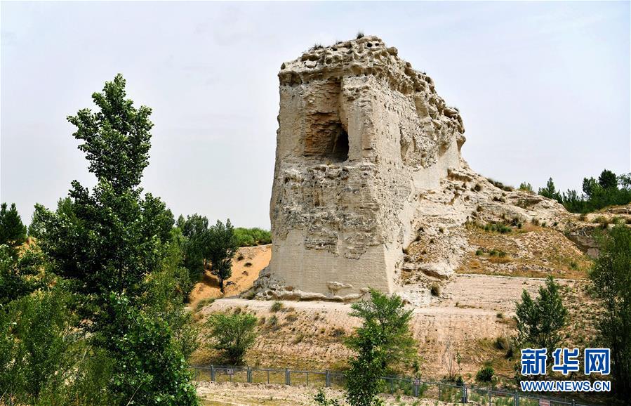 統(tǒng)萬城西南角城臺遺址(5月30日攝)。新華社記者劉瀟攝