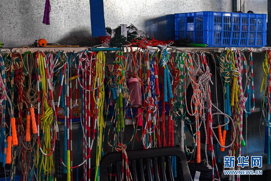 跳繩運(yùn)動已經(jīng)深深融入七星小學(xué)的日常,器材室里擺放的跳繩(2019年11月18日攝)。新華社記者劉大偉攝