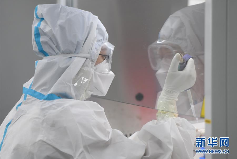 6月2日,在武漢金域醫(yī)學(xué)檢驗(yàn)所里,檢測(cè)人員在工作。新華社記者程敏攝。